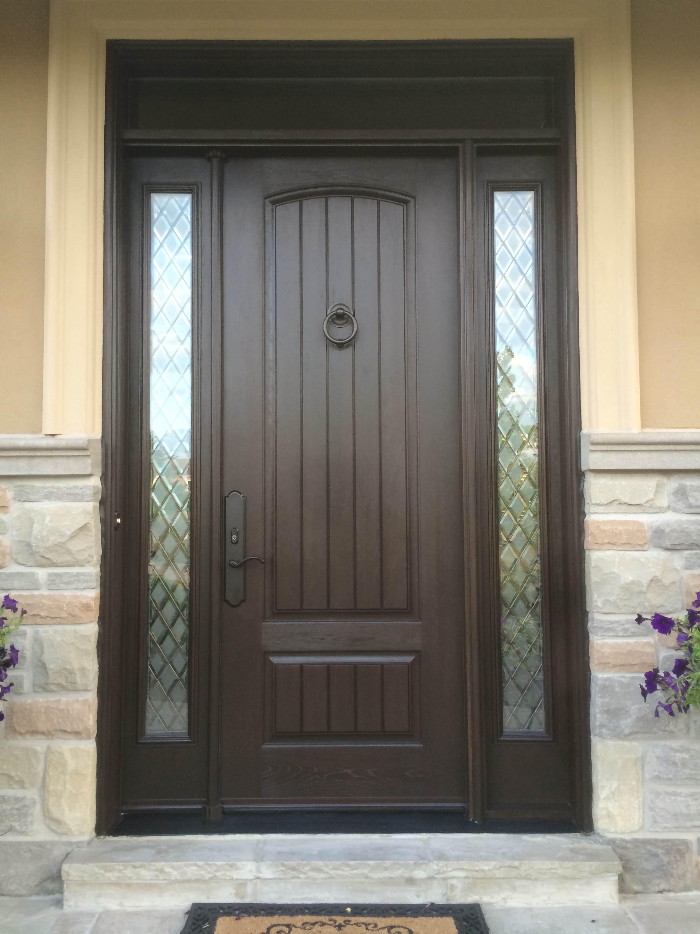 Mastergrain Fiberglass 2 Panel Arched Top with Panel sidelites and Frosted Glass