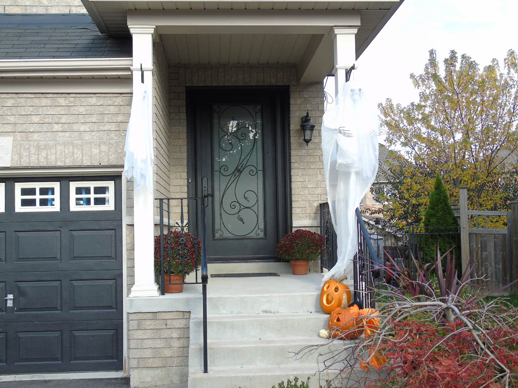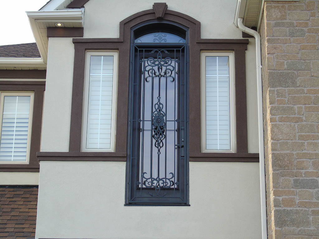 Fiberglass Arch Door with outside grill and filled Sidelites