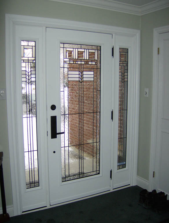 Full Glass Mastergrain Flush with Wide Frosted Sidelites & Zinc Caming