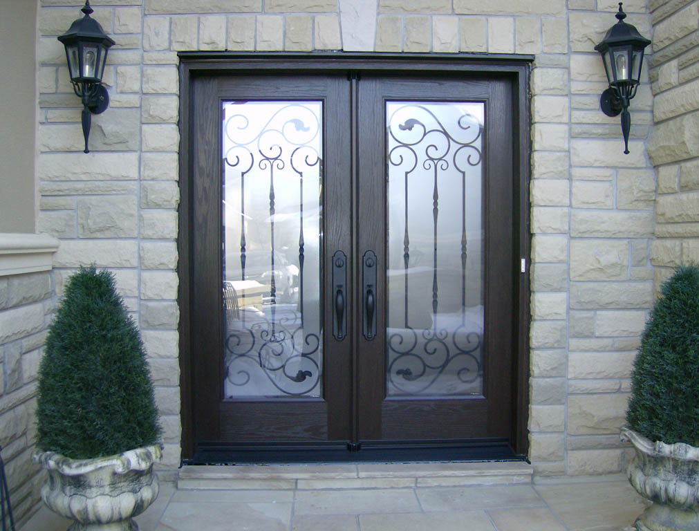 Double Fiberglass door with 2 Sidelites and Custom Wrought Iron Design
